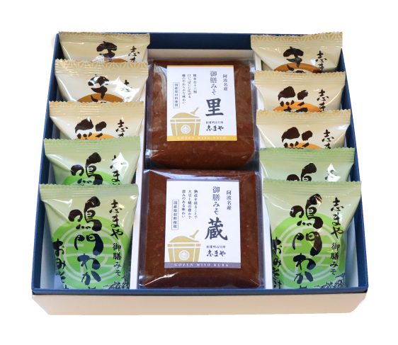徳島名産の御膳みそを中心に、人気のフリーズドライのおみそ汁をつめあわせたギフトです。