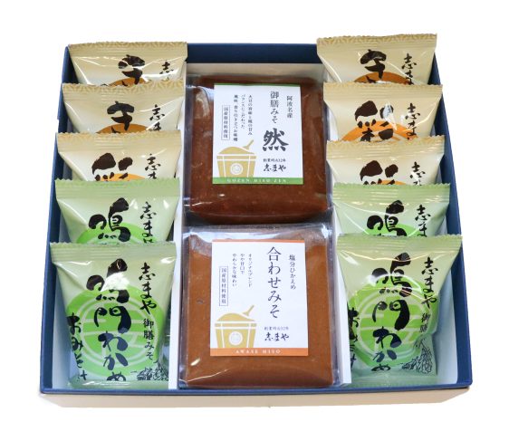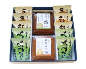 徳島名産の御膳みそを中心に、人気のフリーズドライのおみそ汁をつめあわせたギフトです。